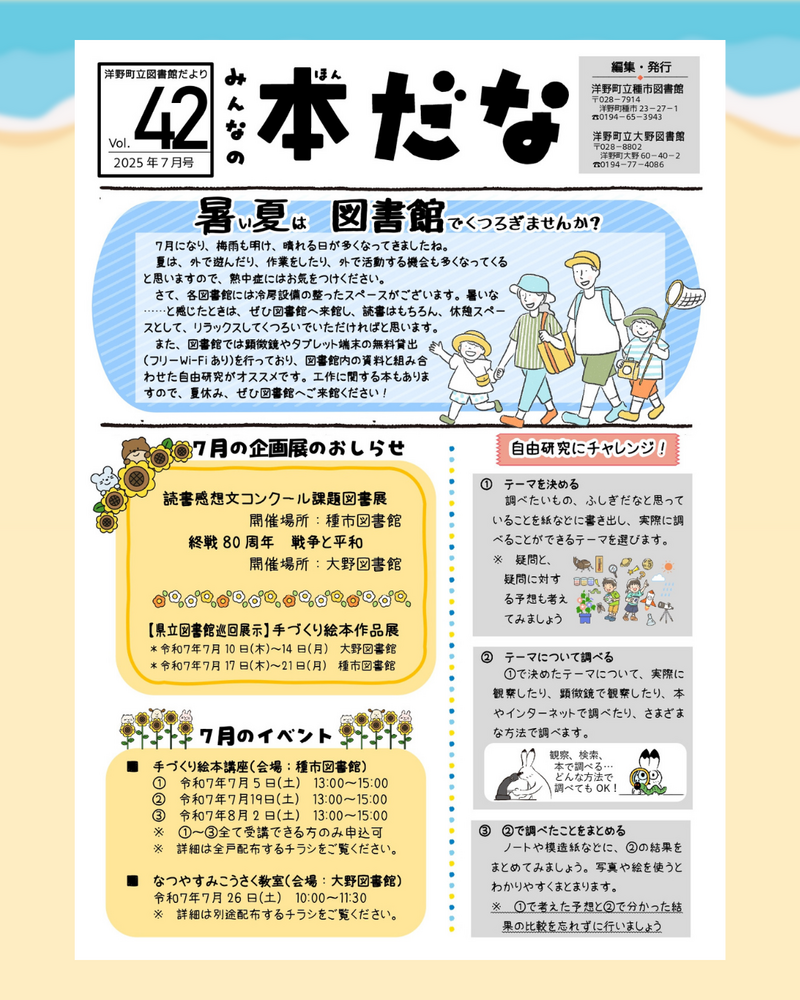 洋野町立図書館だより「みんなの本だなVol.42(7月号)」[PNG:730KB]