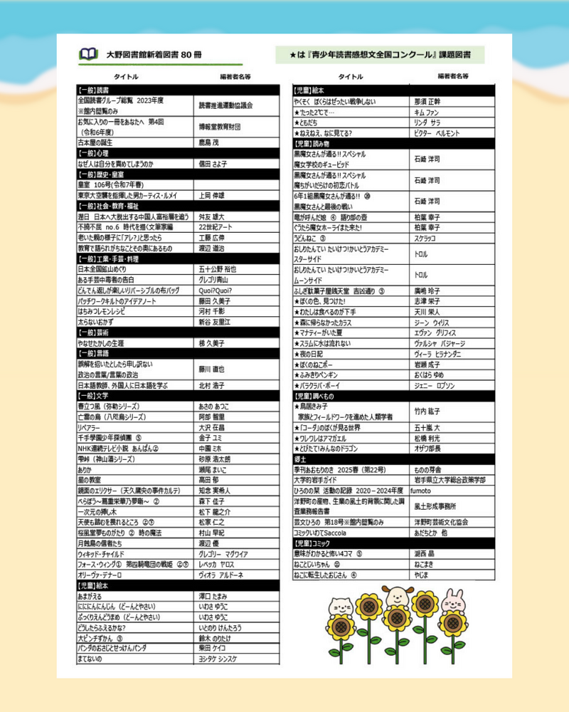 洋野町立図書館だより「みんなの本だなVol.42(7月号)」:大野図書館新着図書紹介[PNG:482KB]